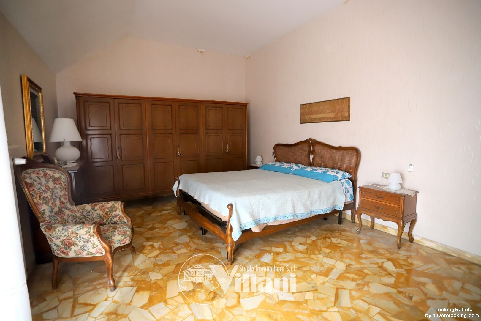 L'immobile è così composto: ingresso, doppio salone, tre camere da letto, cucina abitabile e doppi servizi.