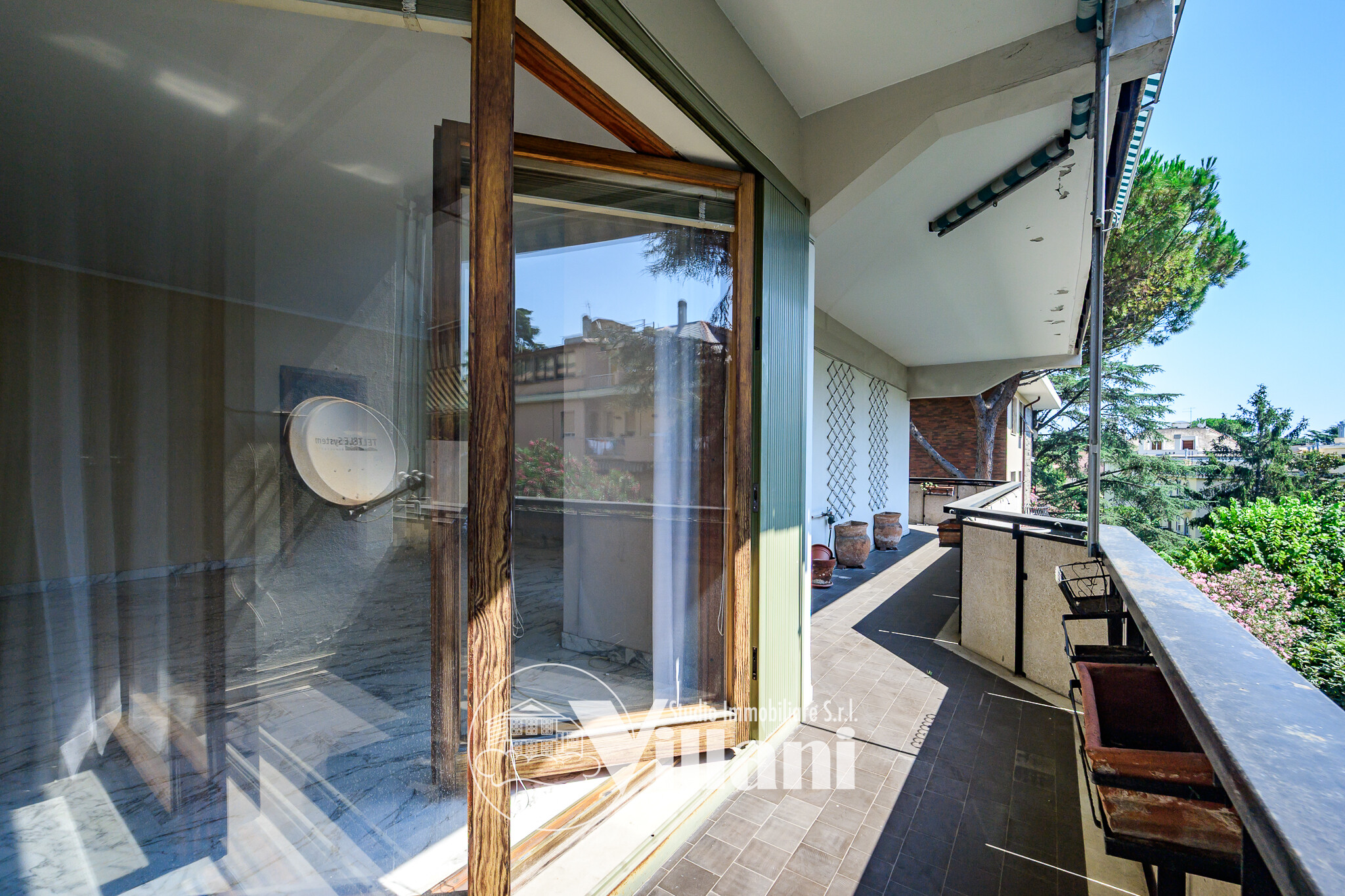 Sono presenti tre balconate vivibili. L’esposizione su tutti e quattro i lati garantisce una luminosità eccezionale e una vista aperta immersa nel verde, regalando un’atmosfera di quiete e riservatezza.