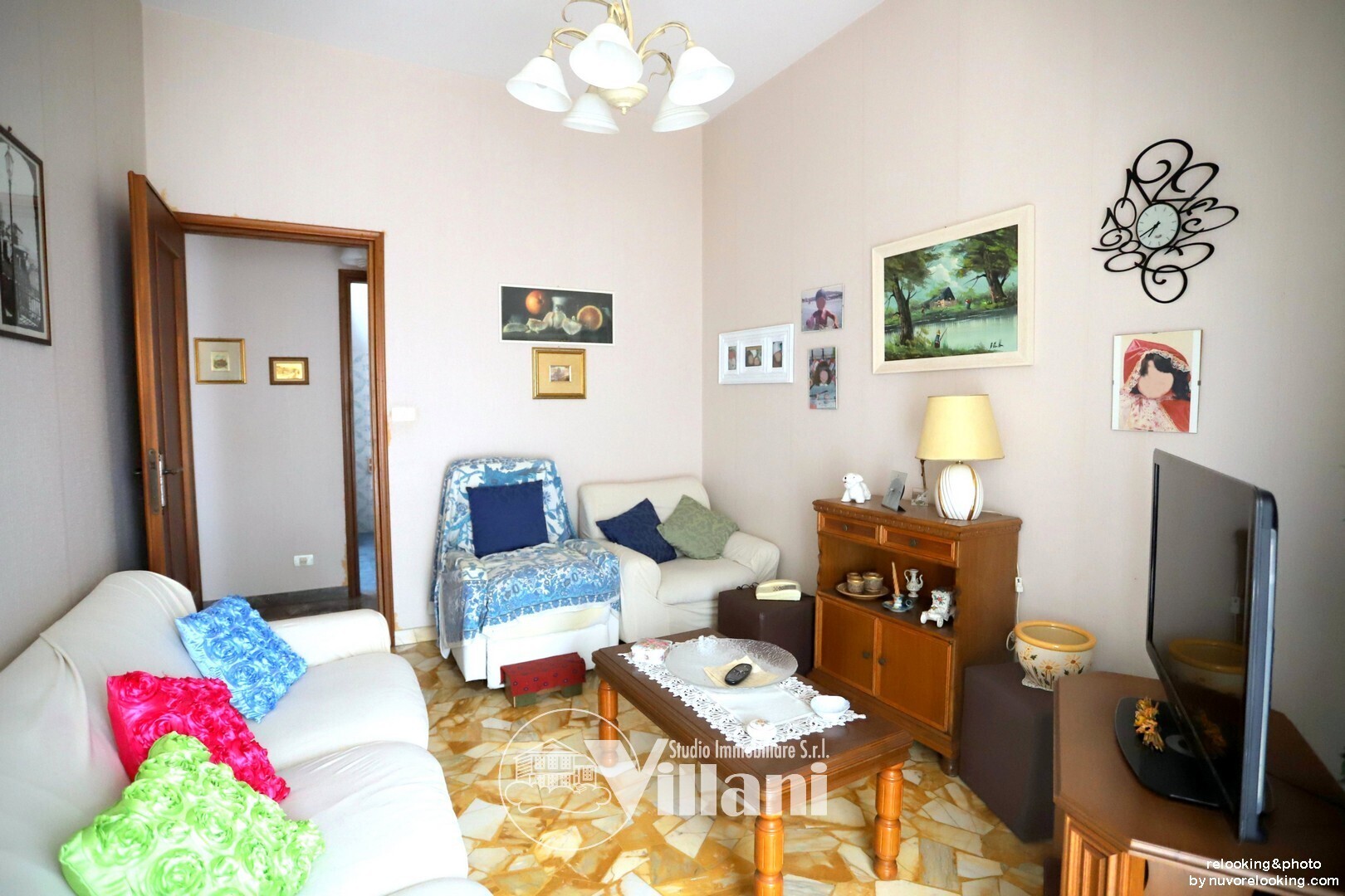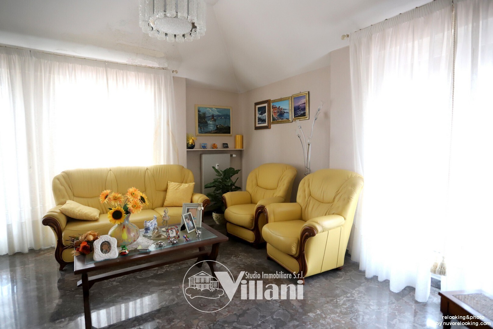 L'immobile è così composto: ingresso, doppio salone, tre camere da letto, cucina abitabile e doppi servizi.