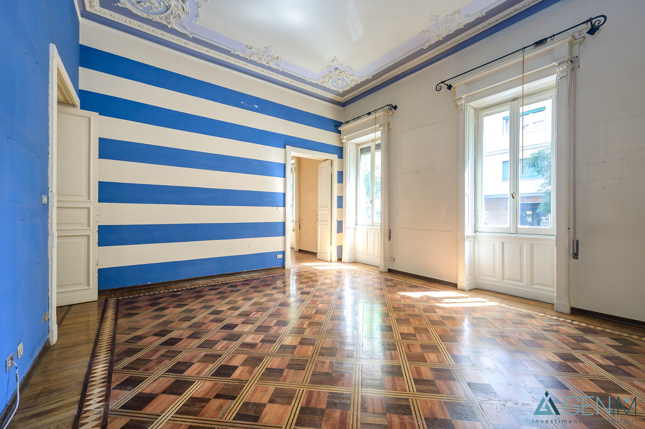 Gli ambienti sono rifiniti con materiali di pregio, è stato eseguito un restauro conservativo che prevede la conservazione e il recupero del parquet originale d’epoca, sono stati restaurati i soffitti decorati, con stucchi e cornici che donano eleganza e raffinatezza agli ambienti. Infissi in PVC doppio vetro, porta blindata e tapparelle elettriche.