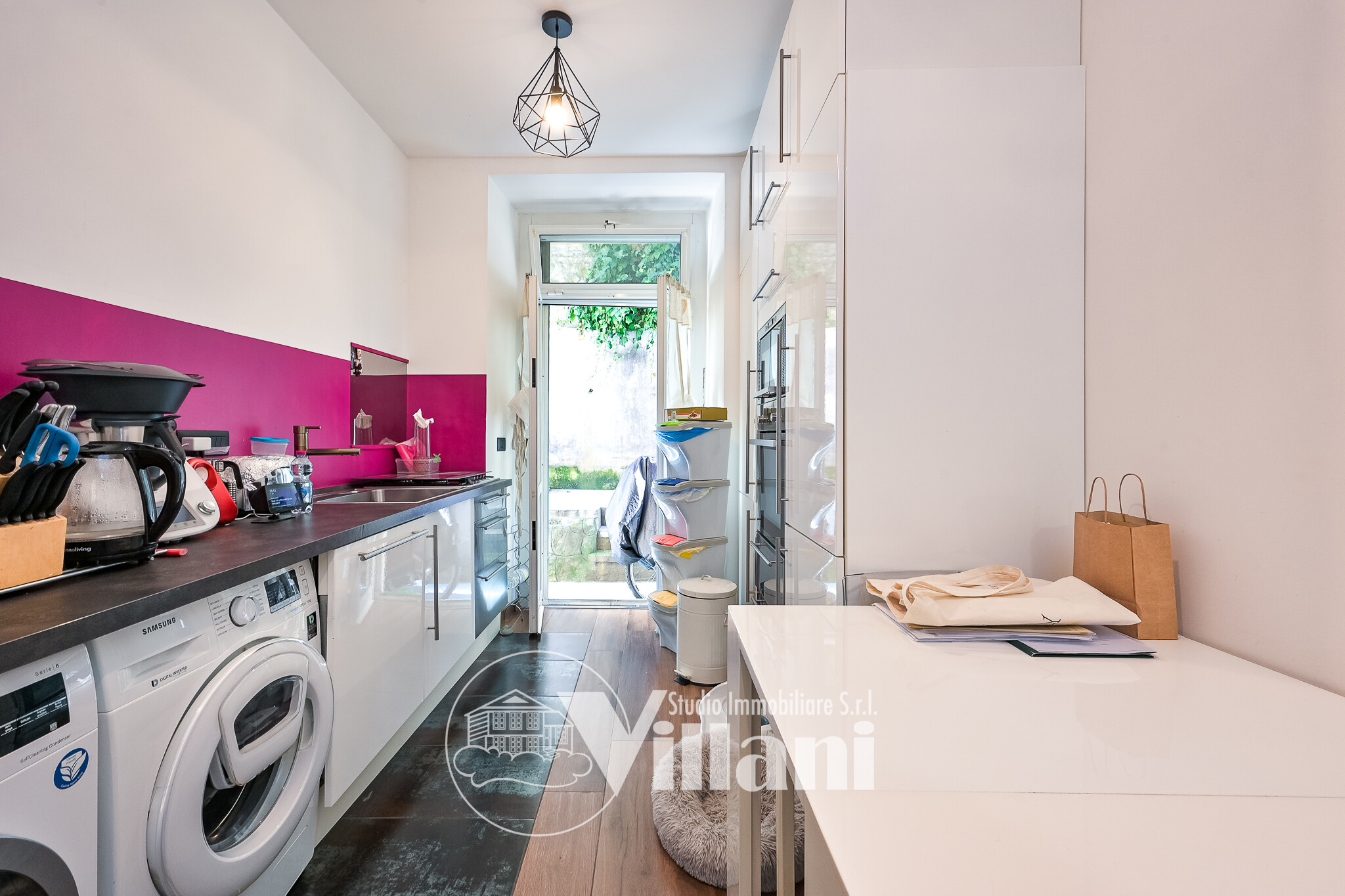 Da soggiorno e cucina si accede al giardino pensile dove è presente anche un ampio magazzino.
